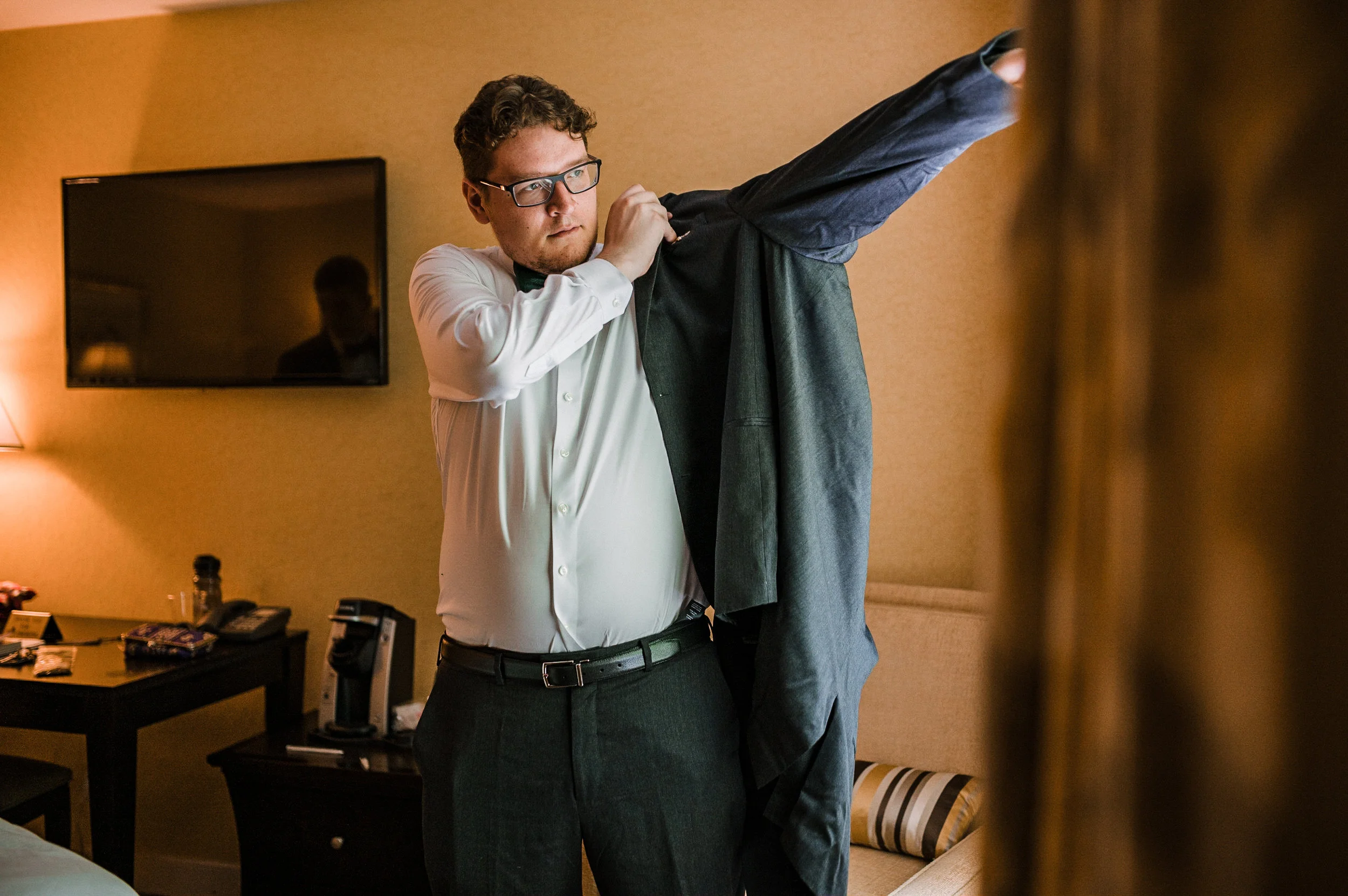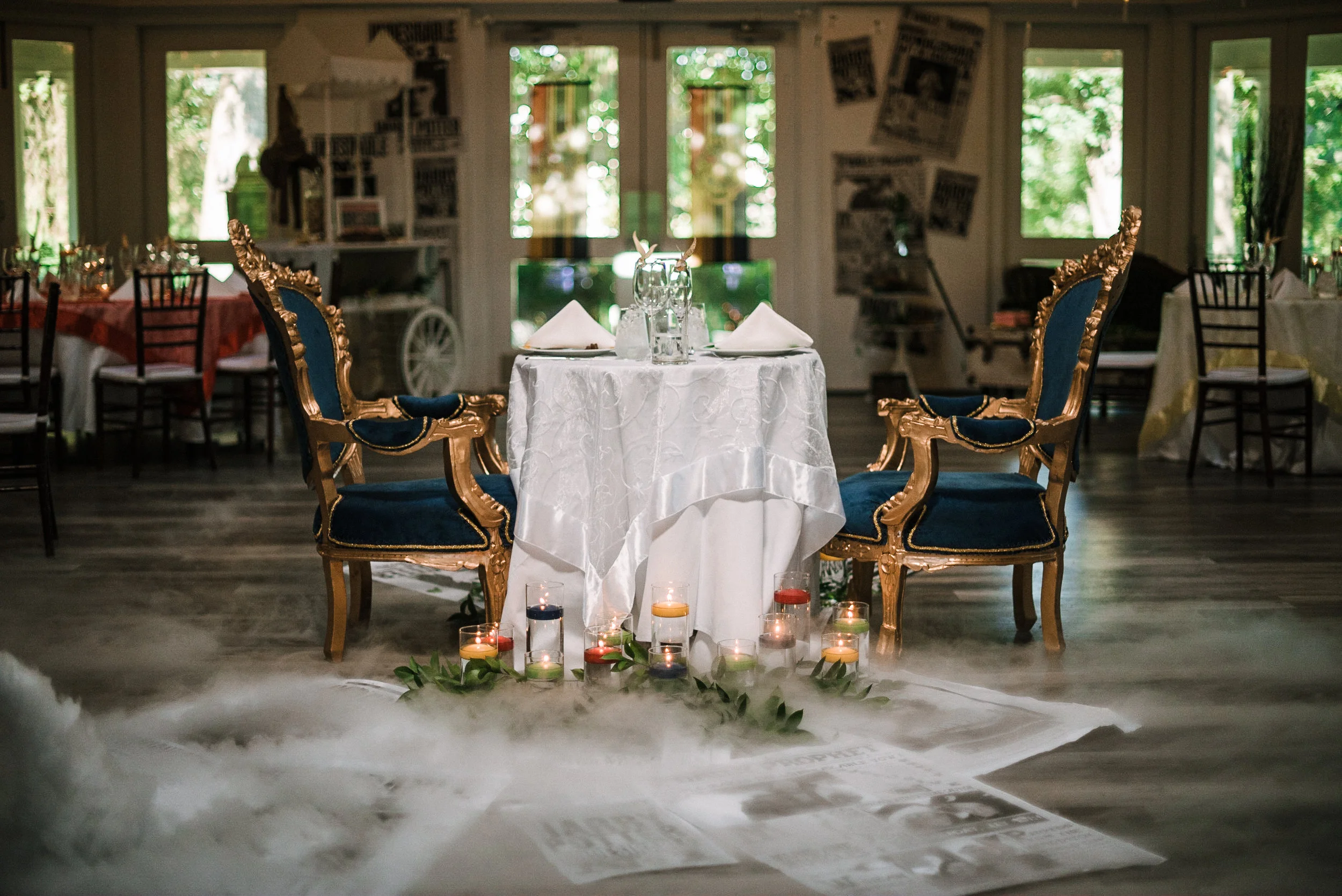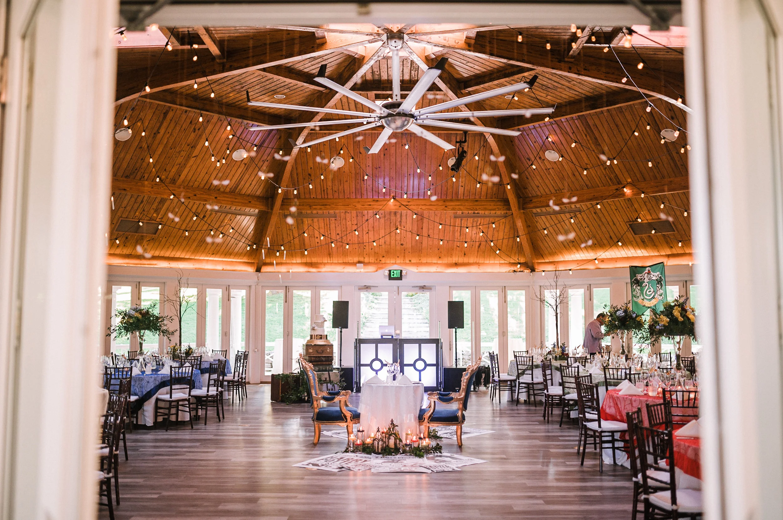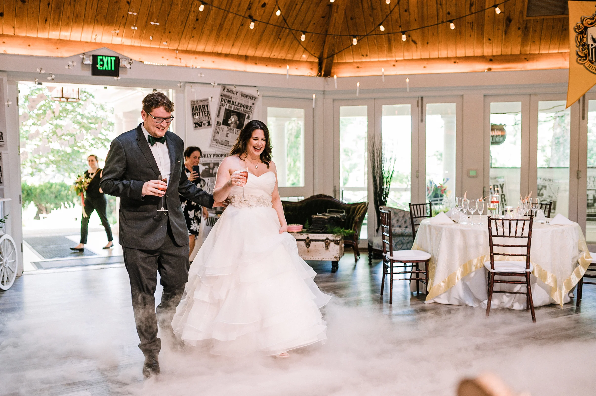 This fun-filled wedding began with Ali & Jonathan getting ready at separate location in Warrenton, Virginia. After getting ready, the bride & groom decided to do a first look where Jonathan’s reaction was completely sweet and priceless. We got some great portraits of these two lovebirds and their wedding party and soon came their awesome ceremony. This Harry Potter themed wedding got started with their Deathly Hallows themed altar. After their super sweet ceremony, came their magical reception with the BEST Harry Potter details to decorate their day. Their reception was filled with spell casting, dancing, and lots of laughs, for very magical evening.