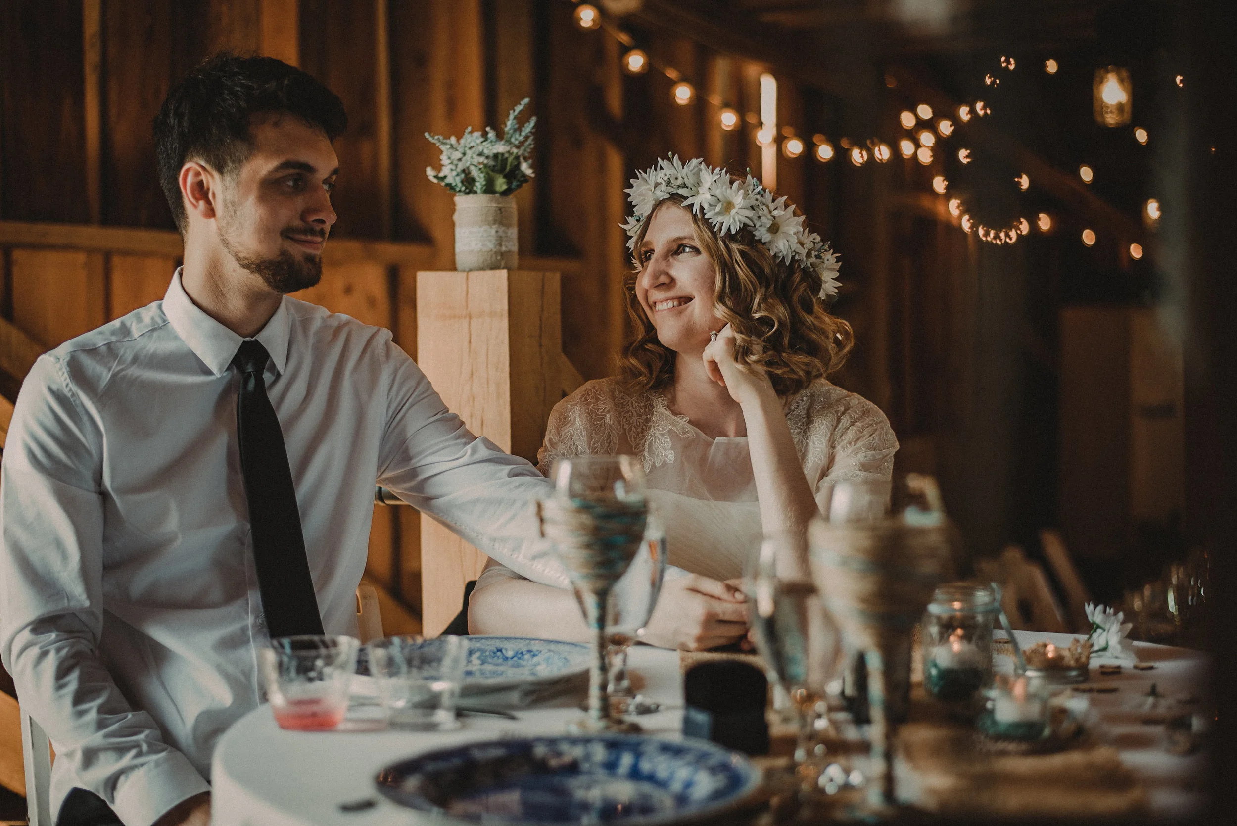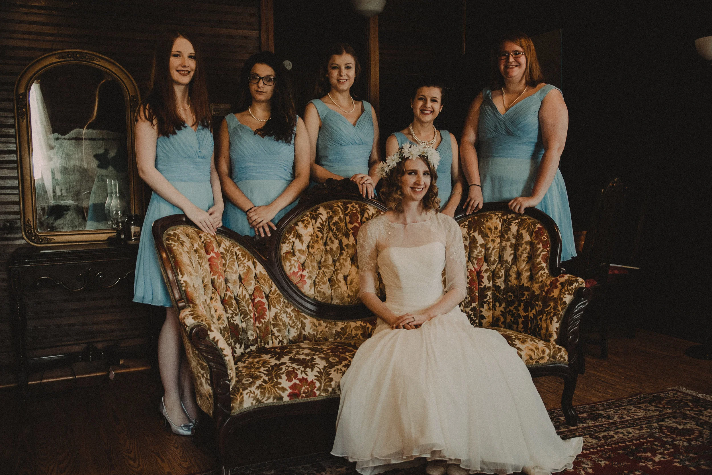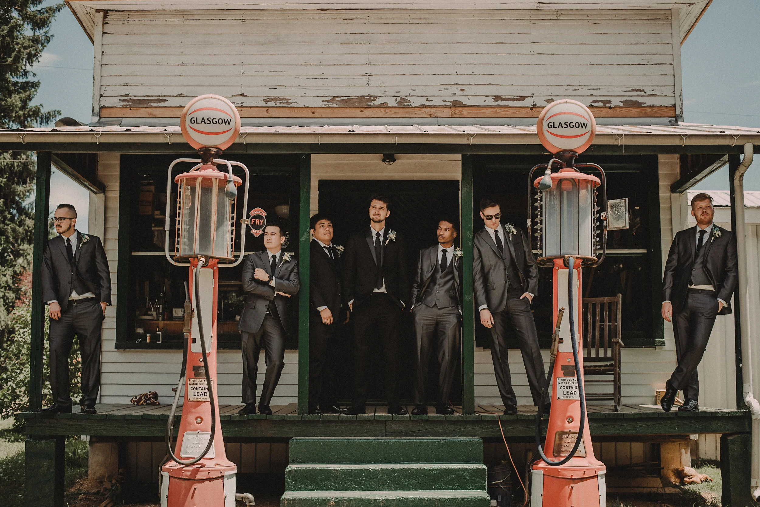 This lovely couple took their bridal party from the Glasgow Bridal Suite and Farmhouse, to their ceremony at the nearby St. Patrick’s Catholic Church, and then back again to the Glasgow Farm for their reception, making for a variety of visually interesting backdrops throughout the day. The tastes and styles of the bride and groom influenced nearly every part of their celebration, as could be seen in the fun, vintage decor and theme. The day was topped off with tons of dancing and laughter, and we snapped plenty of shots of all the guests having an amazing time!