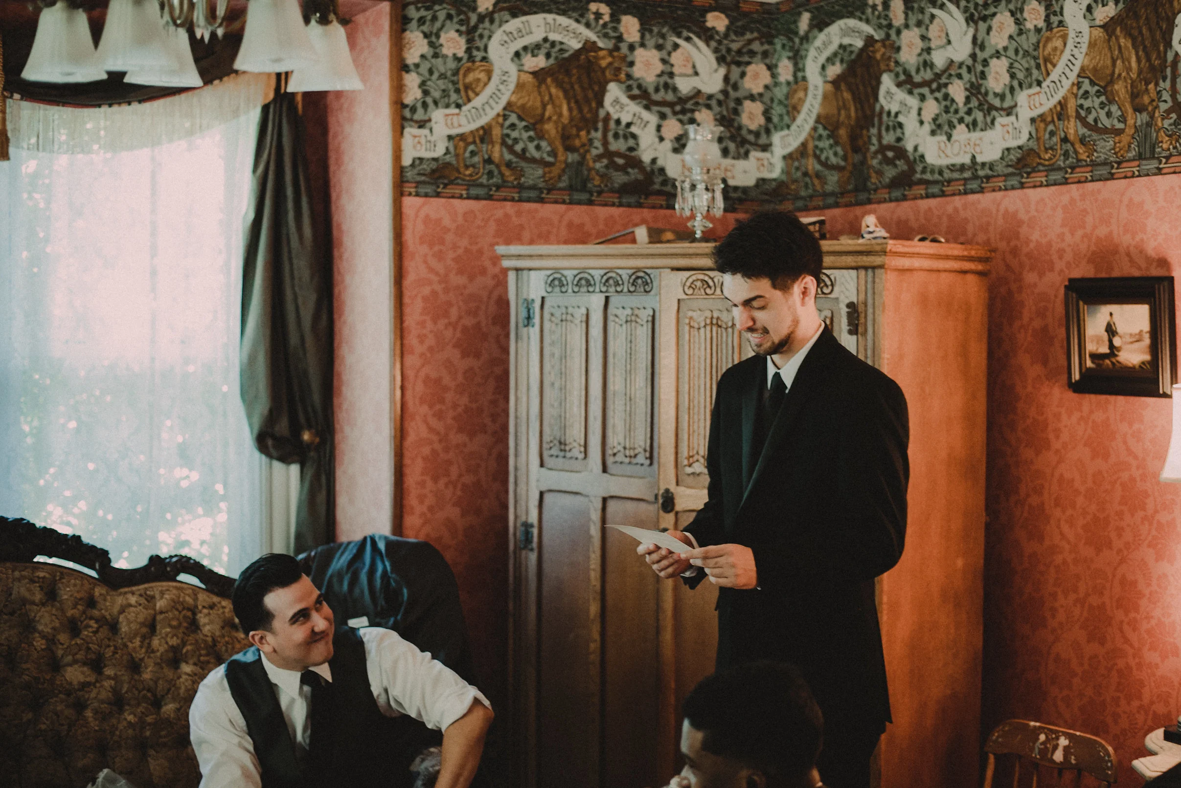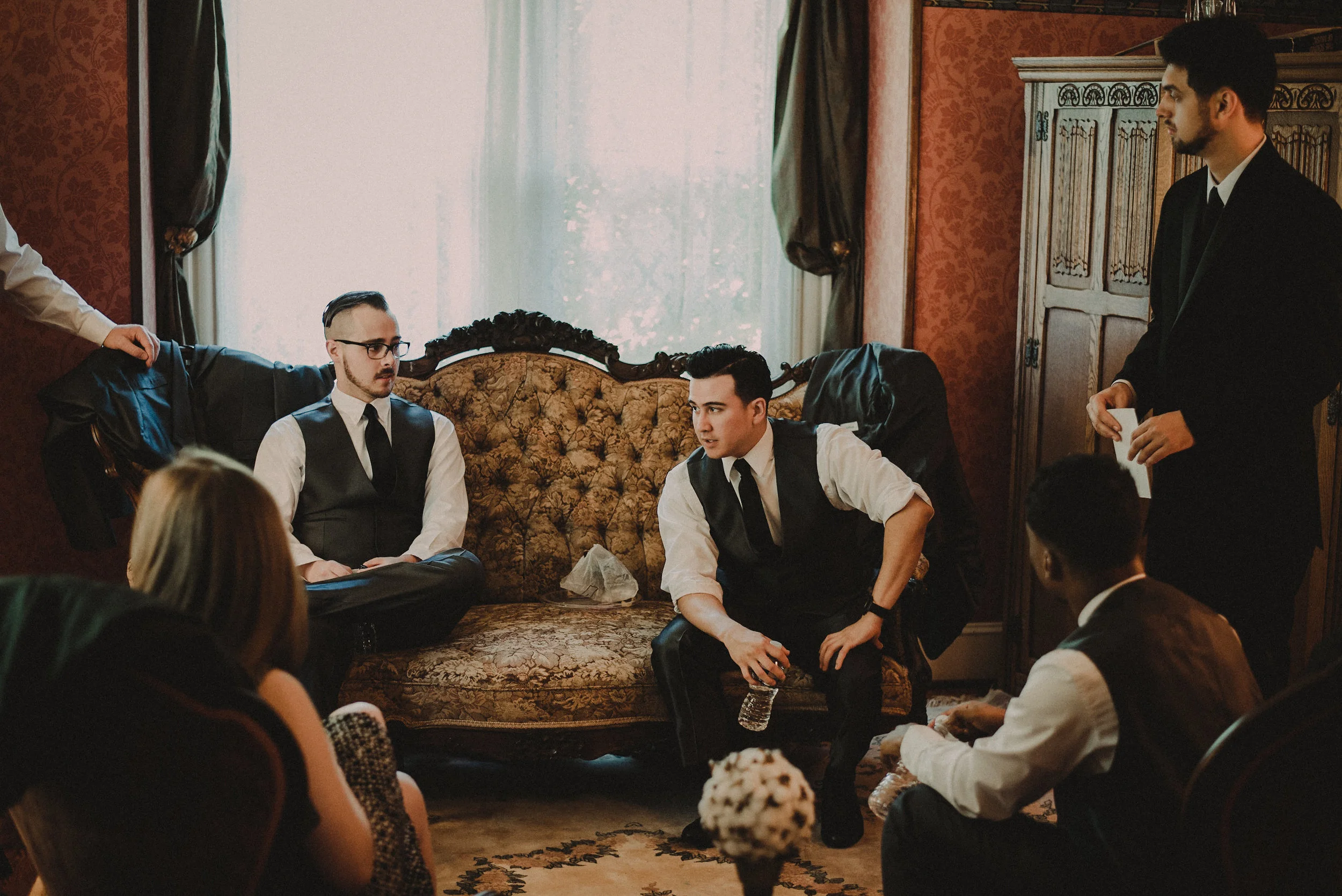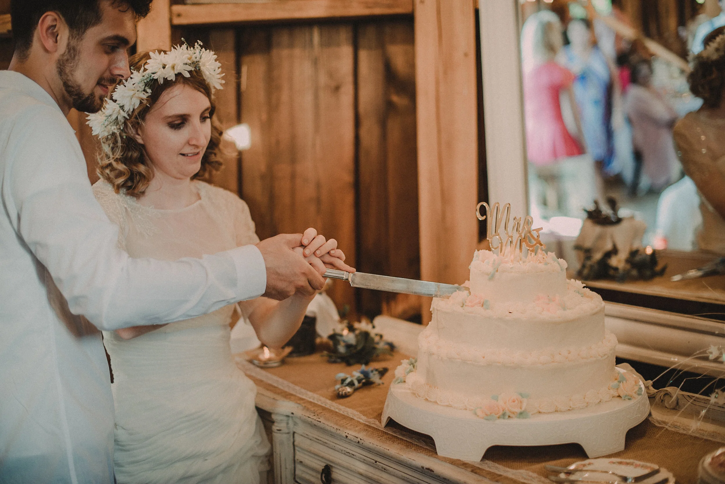 This lovely couple took their bridal party from the Glasgow Bridal Suite and Farmhouse, to their ceremony at the nearby St. Patrick’s Catholic Church, and then back again to the Glasgow Farm for their reception, making for a variety of visually interesting backdrops throughout the day. The tastes and styles of the bride and groom influenced nearly every part of their celebration, as could be seen in the fun, vintage decor and theme. The day was topped off with tons of dancing and laughter, and we snapped plenty of shots of all the guests having an amazing time!